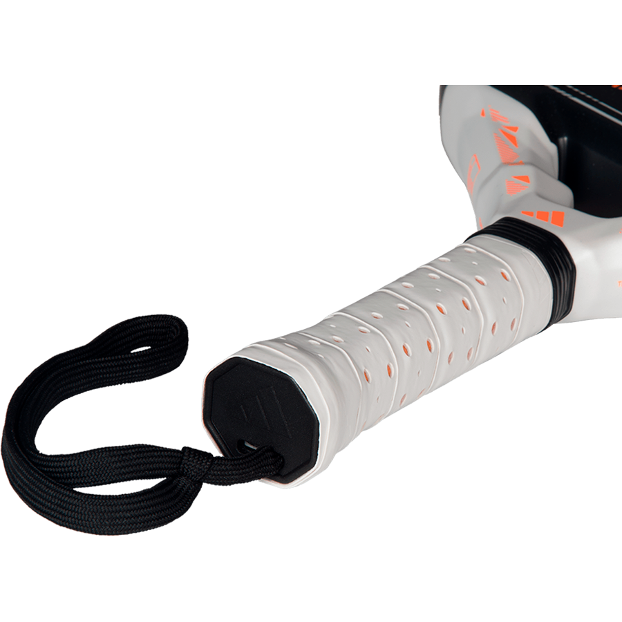 Reach every ball with ease using the adidas Metalbone Team Light 2026. Its reduced weight enhances maneuverability, helping you react faster and stay one step ahead on every point. Octagonal Structure and Low Poly design add stiffness and precision, while the reinforced frame provides stability and consistent performance without adding fatigue. The Soft Performance EVA core and fiberglass deliver a comfortable feel and smooth, controlled ball output. Spin Blade Gritt improves ball grip, and the round shape places more weight near the handle to support agile, controlled defensive shots. This racket is designed for advanced players seeking confidence, lightness, and efficiency on court. And this year, as a major new feature, we are adding an adjustable rope cord to our paddles for a better grip on the wrist.