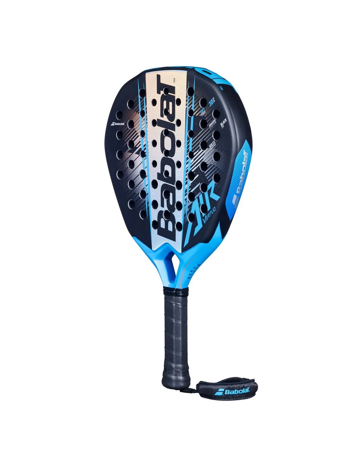 This allows players to easily put more power into their shots, in both attack and defense modes, without compromising control. This racquet also incorporates advanced technologies such as the Holes Pattern System, which optimizes the distribution of holes on the racquet face to provide greater stability and consistency in shots. The Vibrabsorb System technology reduces vibrations for greater comfort during play and protects the arm, making it ideal for long training sessions and intense matches.In summary, the Air Vertuo is a balanced racquet, perfect for players who want versatile performance that combines control, maneuverability, comfort and power.