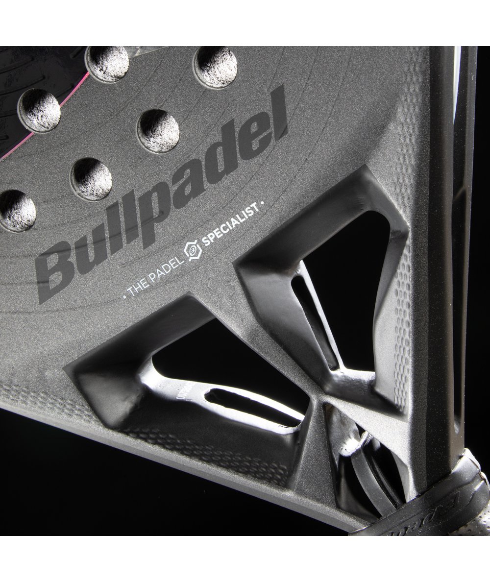 The Bullpadel HACK 04 Hybrid features a new 3D rough surface with concentric circles, designed to optimize spin. Upon impact, this new rough surface generates greater friction, ensuring longer and more precise contact, resulting in winning spin, both on groundstrokes and subtle shots near the net.