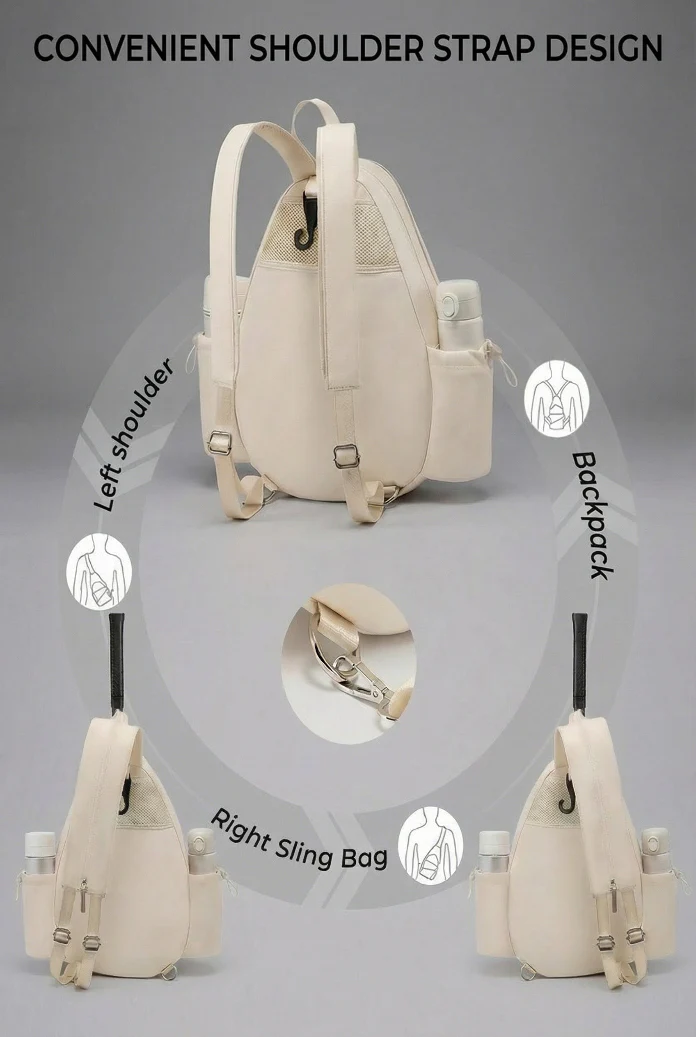 • Two Deep Side Pockets: Perfect for water bottles or multiple Padel balls with adjustable shrink cords for security.