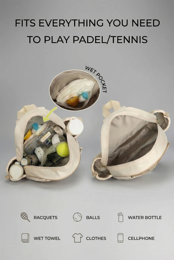 • Dedicated Racket Compartment: Secure front-loading design holds a full-size Padel or tennis racket safely in place.
